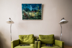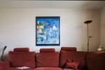 De muur achter de bank